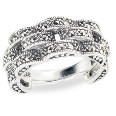 5-Row interlocking Pave Set Marcasite Link Eternity Ring Wide Band