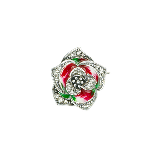 Dazzling Enamel Marcasite Rose Flower Brooch
