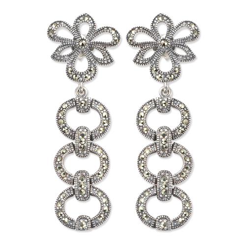 Interlinked Marcasite Round Loop Dangle Earring with Flower Bail