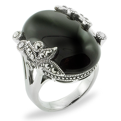 Large Oval Onyx & Floral Overlay Cocktail Ring