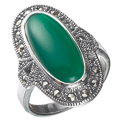 Long Oval Agate & Vintage Halo Marcasite Ring