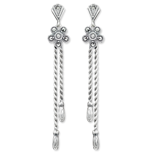 Marcasite Cheery Flower Cluster & Twisted Long Line Earring with Bail