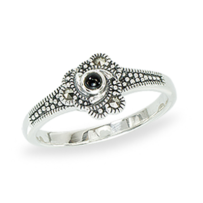Marcasite Flower Motif with Milgrain Silver Band