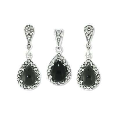 Marcasite Jewelry Set-E0781-ONX-PIN