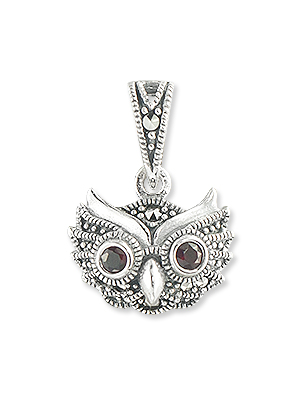 Marcasite Owl Face with Red Garnet Eye Pendant (Big)