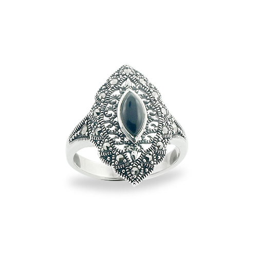 Marquise Shape Ring with Filigree and Marcasite Halo