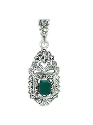 Octagon Agate & Double Marcasite Halo and Heart Scroll Pendant