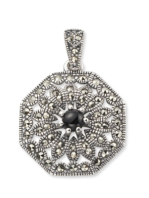 Octagon-Shape Marcasite Pendant with Flower Motif & Onyx