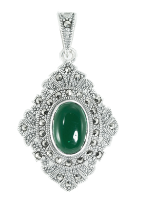 Oval Agate Halo & Vintage Marcasite Diamond-Shape Pendant