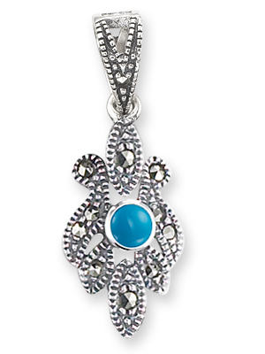 Oval Turquoise and Vintage Scroll Marcasite Accent Pendant