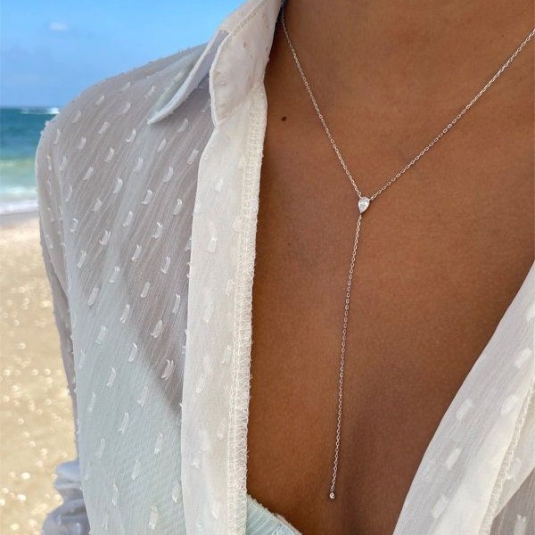 - V-neck tops: Layered Y-chains or lariats echo the shape and enhance the line